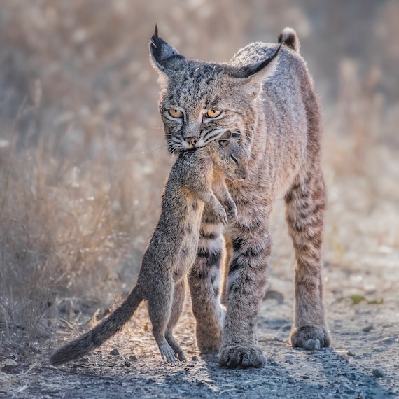 Bobcat With Squirrel Signed Print With Story Etsy Uk